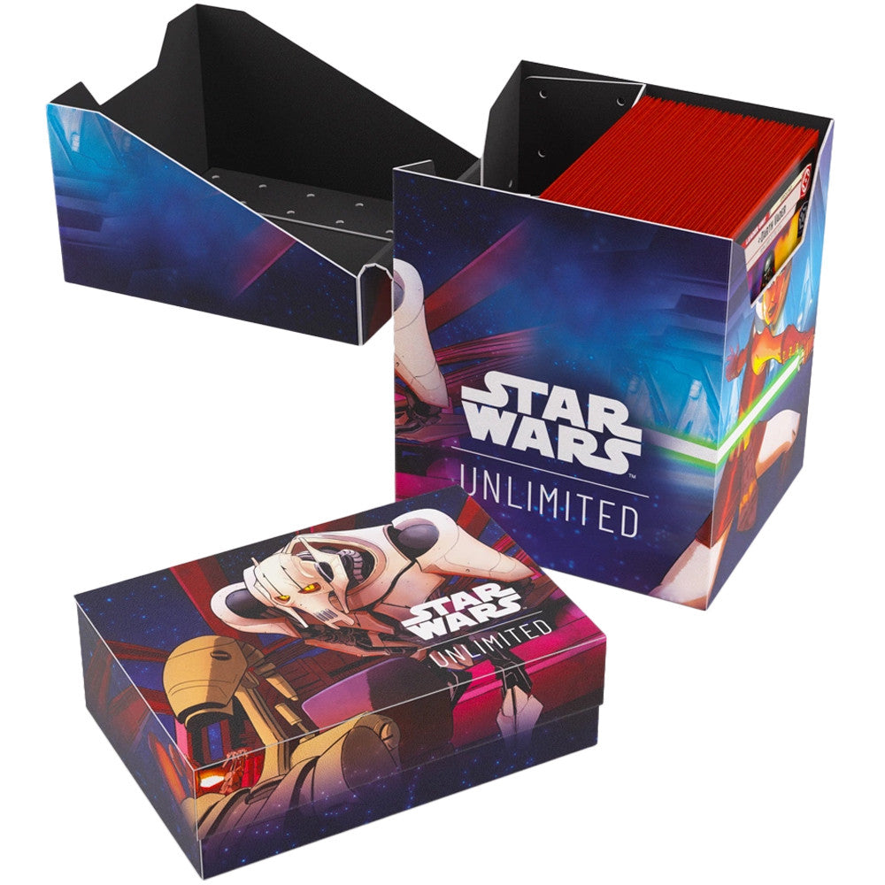 The Soft Crate is the durable all-in-one solution for Star Wars Unlimited players. This full-color printed deck box is packed with ingenious features. It protects a full double-sleeved deck of 60 cards and includes an innovative token box! This token box has a smart click-lock mechanism to keep all tokens safely stored. Once opened, the lid stays upright for convenient access.